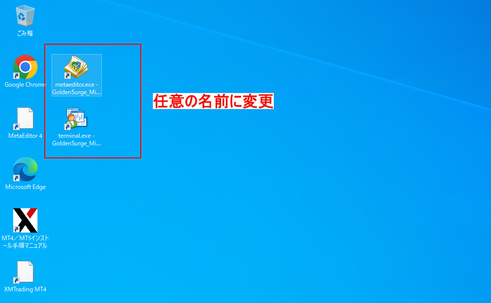 インストール時にデスクトップに生成された「XMTrading MT4」「MetaEditor 4」のショートカットを削除します。
